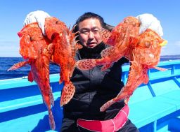 | 2月22日 午前船・オニカサゴ 久し振りに参戦の鬼侍が外道のアラをGET! |